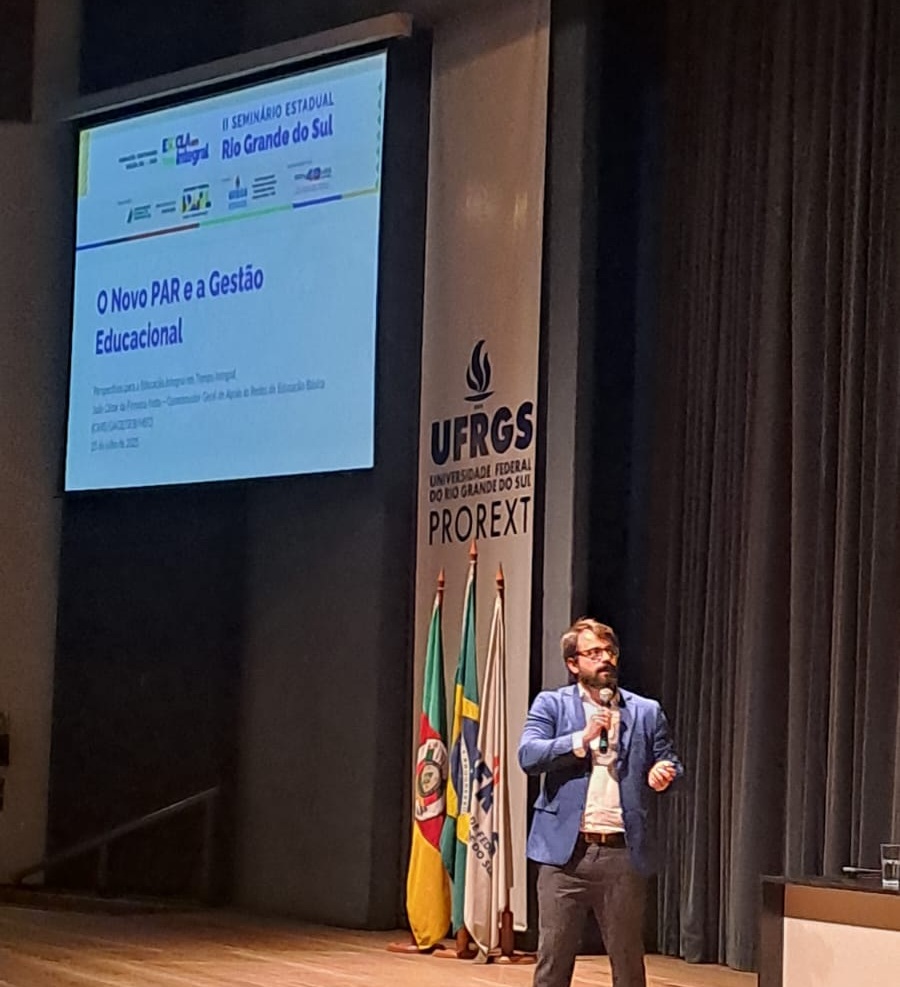 O Seminário Estadual de Educação, realizado nos dias 24 e 25 de julho na UFRGS, em Porto Alegre/RS, reuniu representantes dos 497 municípios do Rio Grande do Sul, além de especialistas e autoridades educacionais. O encontro teve como objetivo promover o debate sobre políticas públicas, desafios contemporâneos e estratégias para o fortalecimento da educação básica no estado.