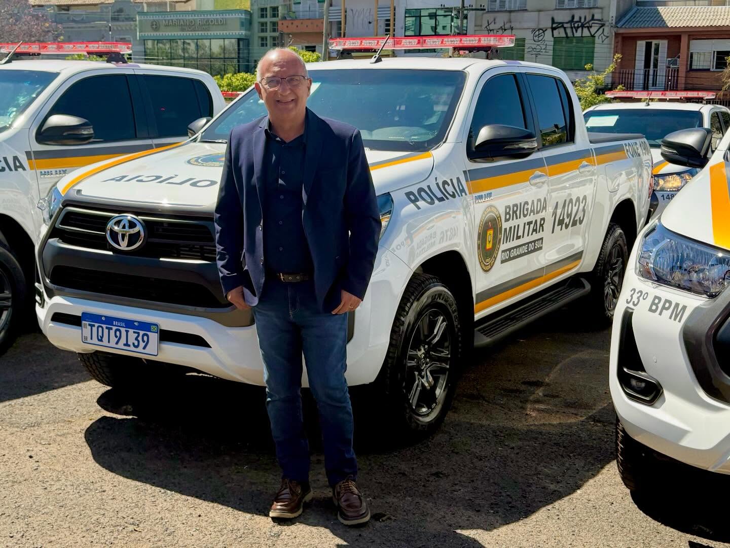 Entre os veículos entregues está uma nova Hilux destinada à Brigada Militar de Tramandaí, que reforçará o trabalho de segurança e patrulhamento em nosso município.