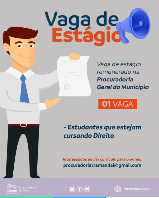Temos uma ótima oportunidade para você que está cursando Direito e busca experiência na área pública: a Prefeitura de Tramandaí está com vaga aberta para estágio remunerado na Procuradoria Municipal!