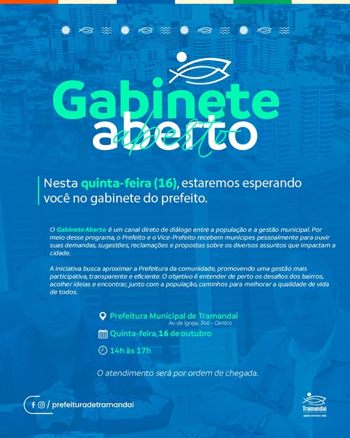 Nesta quinta-feira, dia 16 de outubro, acontece mais uma edição do Gabinete Aberto, um espaço dedicado ao diálogo com a comunidade.