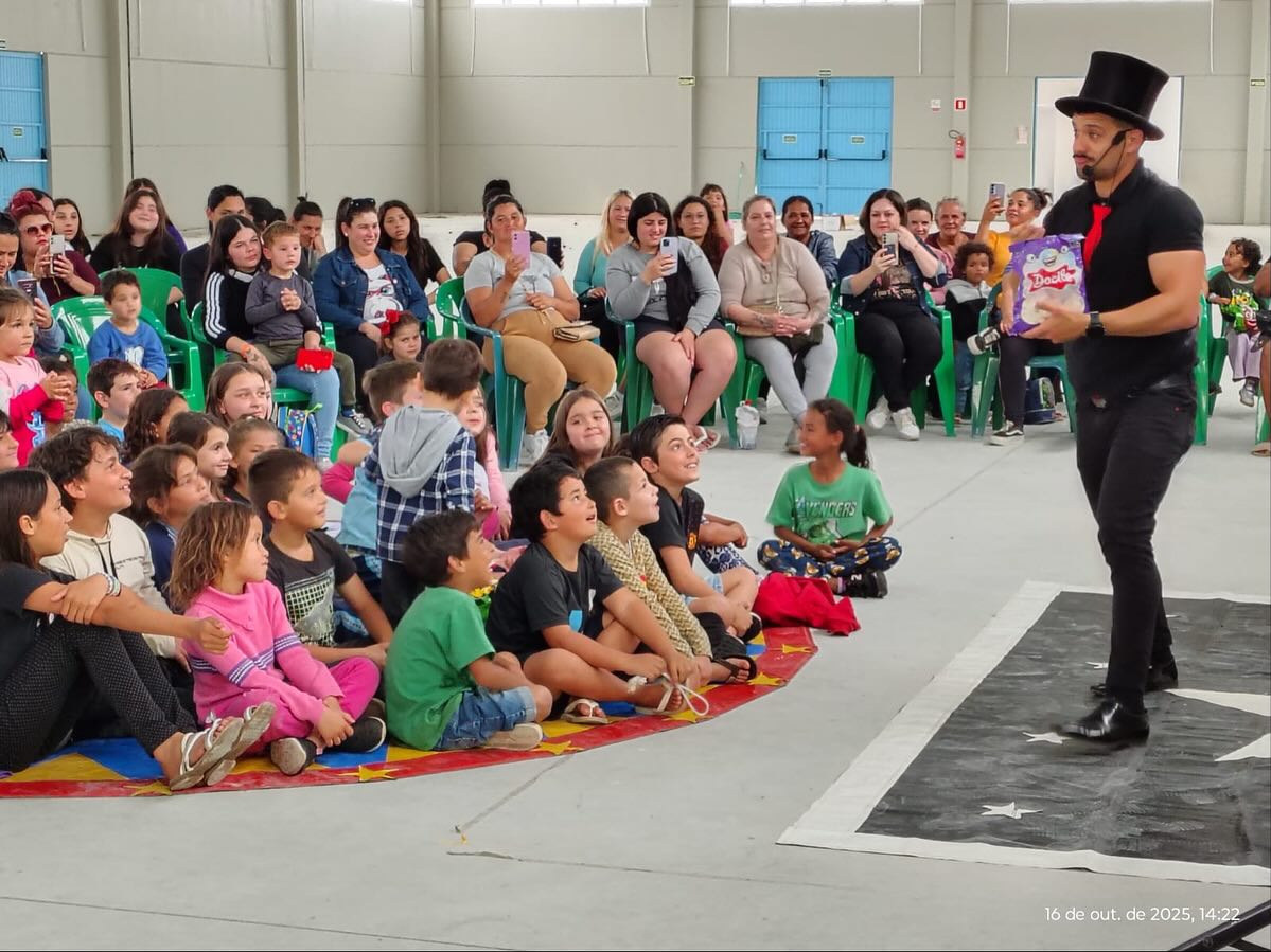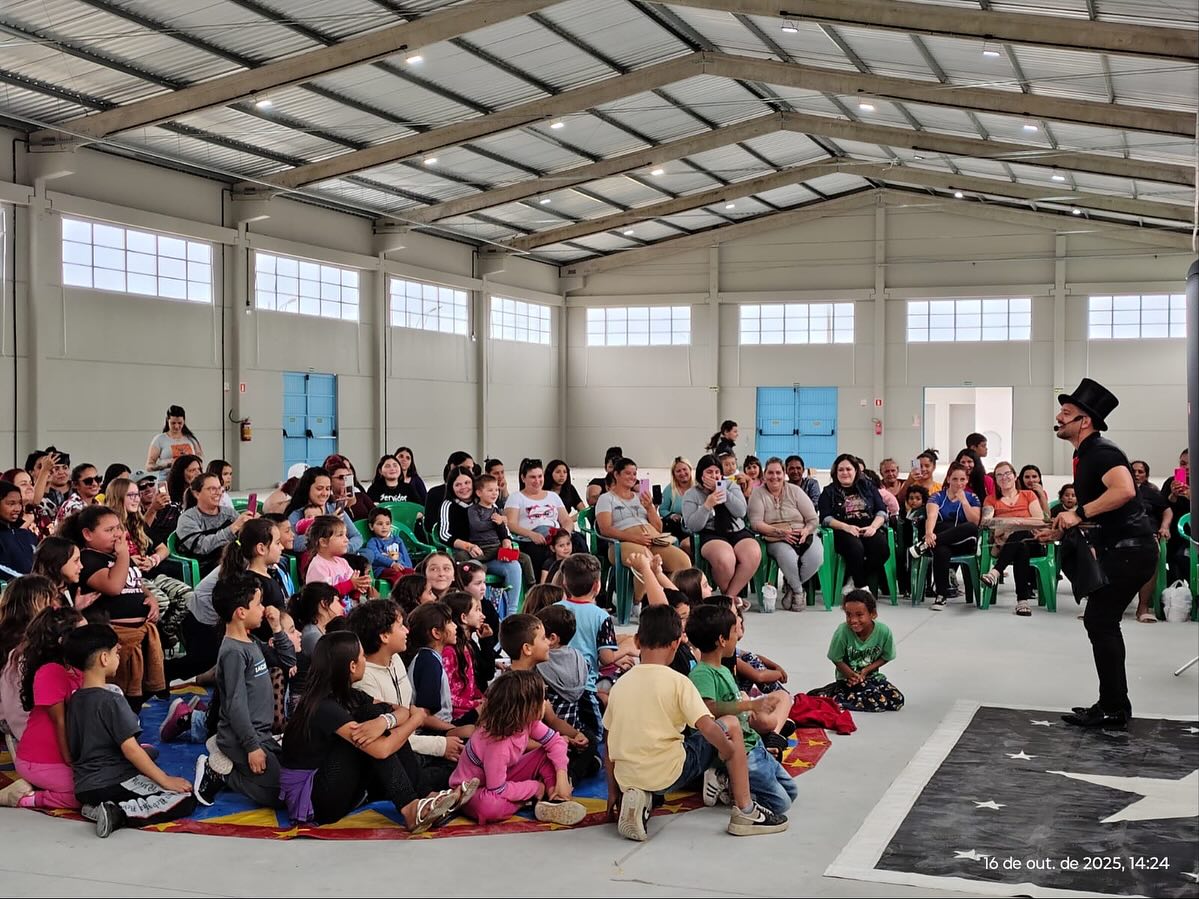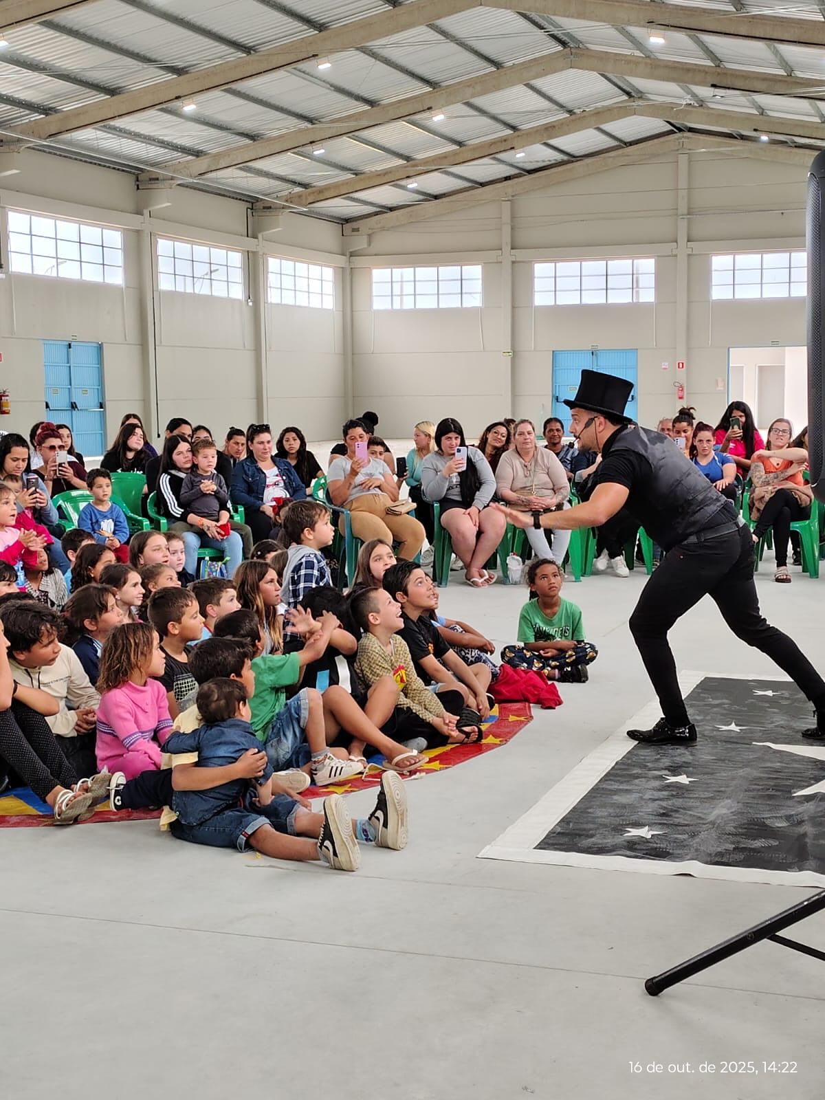 Cerca de 200 famílias participaram de uma encantadora tarde de mágica com o artista Bruno Mariotti, que apresentou um espetáculo repleto de efeitos incríveis, truques surpreendentes e muita diversão para crianças e adultos.