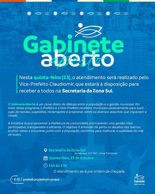 A Prefeitura de Tramandaí convida toda a comunidade a participar de mais uma edição do Gabinete Aberto, um espaço de diálogo direto entre a população e a gestão municipal.