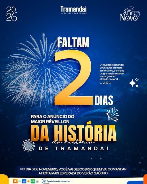 O Réveillon Tramandaí 2025/2026 promete ser o maior da história da Capital das Praias, com uma programação inesquecível e uma grande atração nacional que vai agitar o litoral gaúcho!