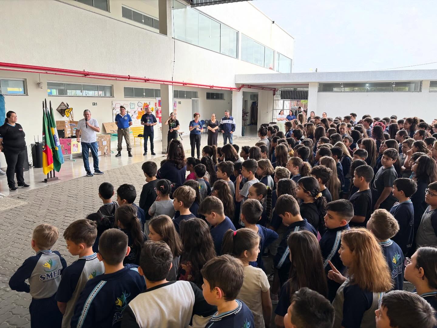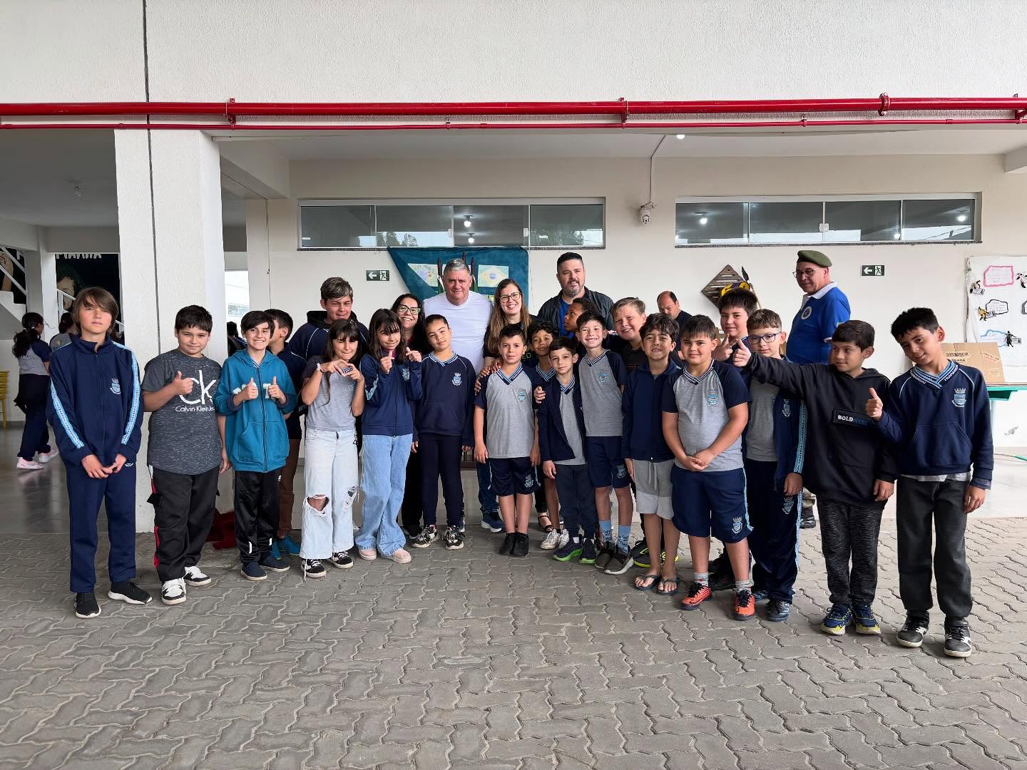 O momento contou com a presença da equipe da Secretaria de Educação, do representante da Liga de Defesa Nacional/RS, Adriano Neves, além dos alunos e da equipe diretiva da escola.