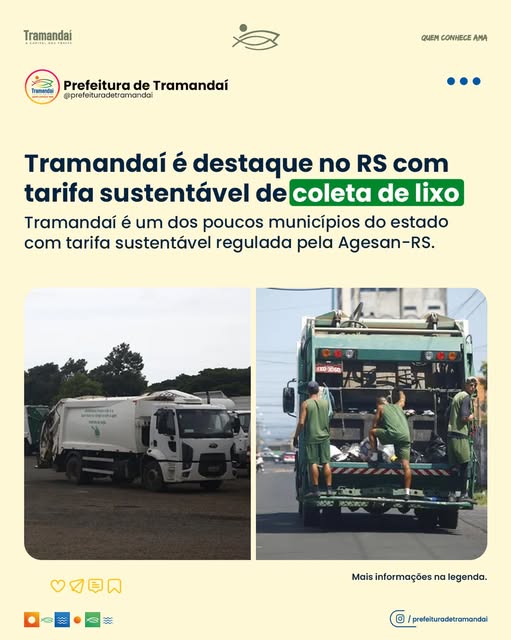 Tramandaí segue avançando com responsabilidade e compromisso com o meio ambiente. Somos um dos poucos municípios do Rio Grande do Sul que já conta com tarifa sustentável de coleta de lixo regulada pela Agesan-RS, garantindo mais transparência, equilíbrio e qualidade no serviço prestado à nossa população.