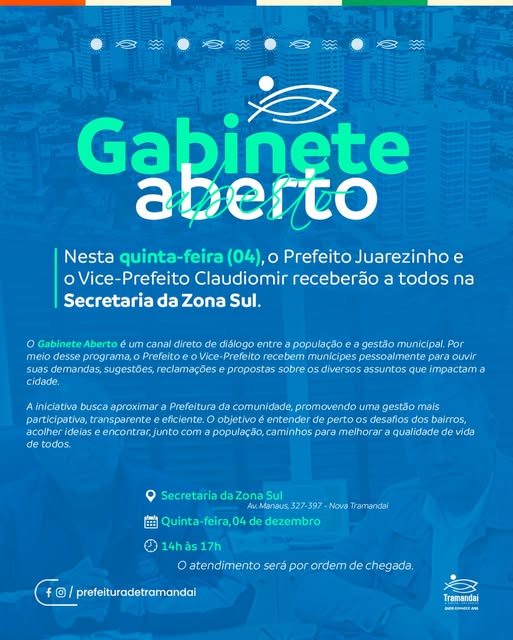 O Gabinete Aberto é um canal de diálogo entre a população e a gestão municipal. É a oportunidade para que os moradores apresentem suas demandas, sugestões e propostas sobre os mais diversos assuntos que impactam o dia a dia da nossa cidade.