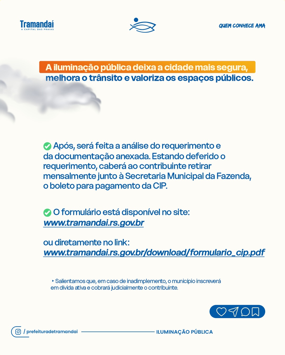 4 - Após, será feita a análise do requerimento e da documentação anexada. Estando deferido o requerimento, caberá ao contribuinte retirar mensalmente junto à Secretaria Municipal da Fazenda, o boleto para pagamento da CIP.
