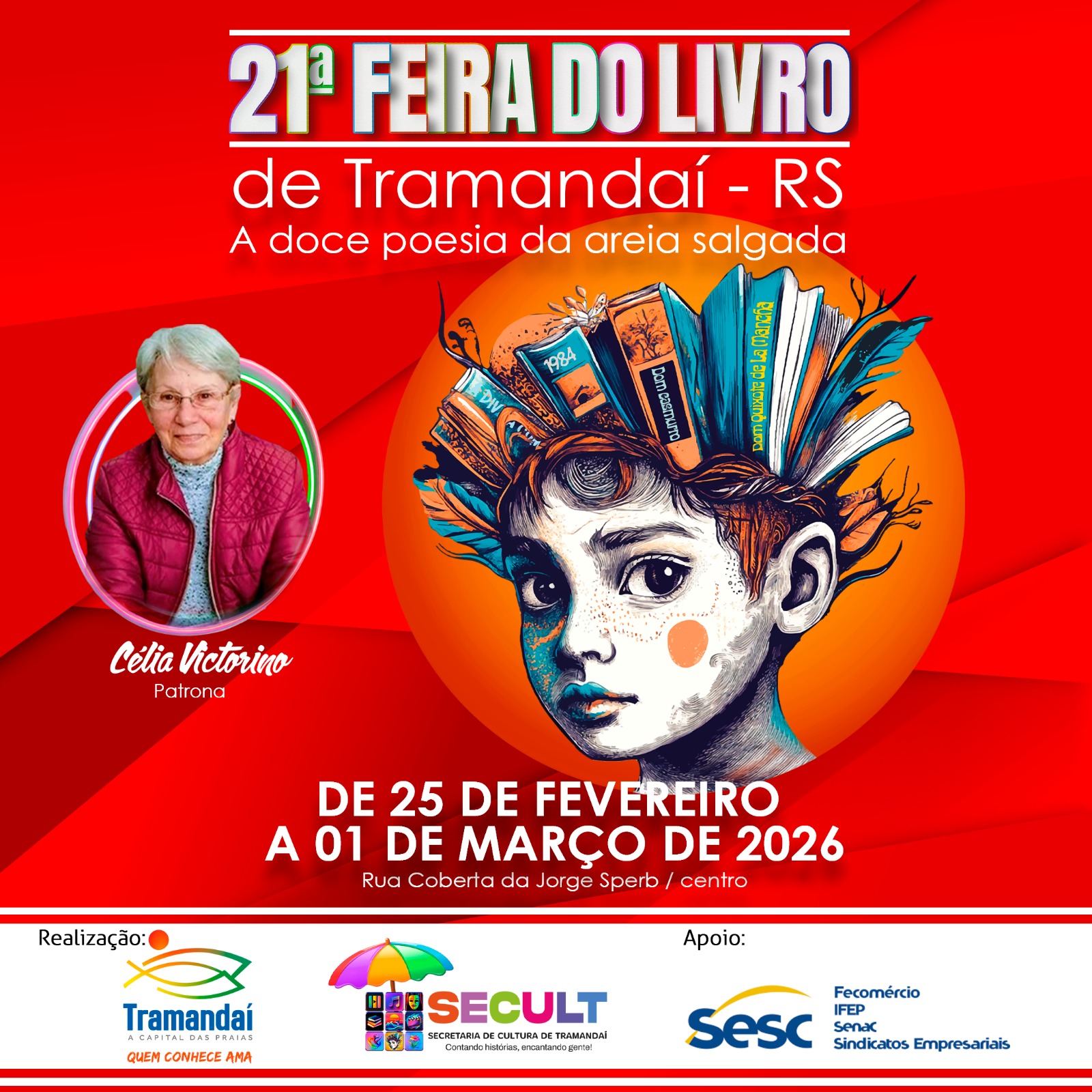 Mãe de três rapazes, avó e bisavó, Célia Jurema representa, como Patrona da Feira do Livro de Tramandaí, a força da literatura como instrumento de transformação, identidade e formação de leitores.