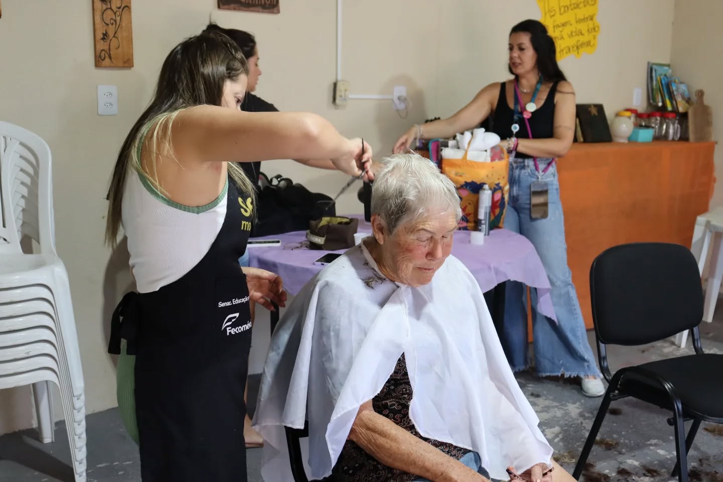 A programação também incluiu uma palestra com a terapeuta Regiane Rezende, proporcionando um momento de reflexão, cuidado e fortalecimento emocional para as participantes. Para completar a tarde, foram oferecidos cortes de cabelo gratuitos, realizados em parceria com o Senac, promovendo autoestima e bem-estar.