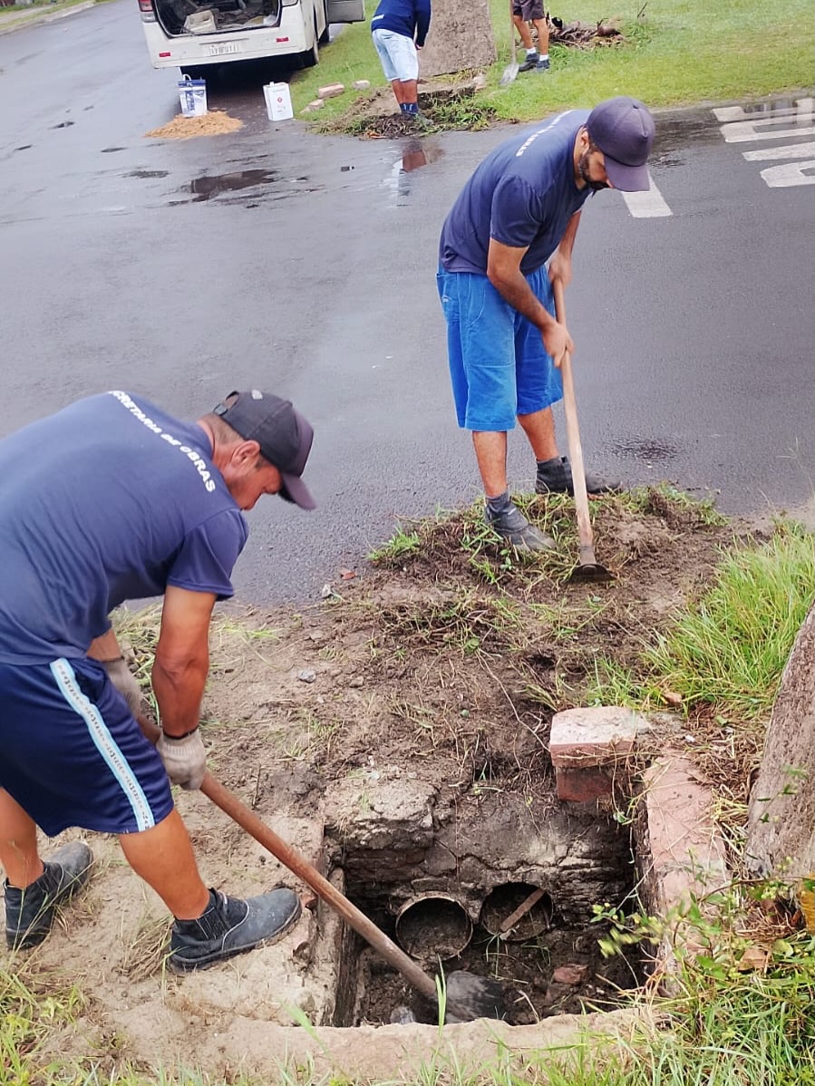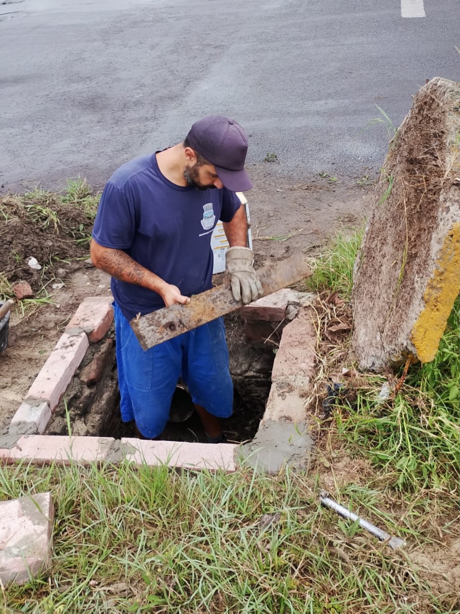 Já na Av. Ubatuba de Farias com a Av. Flores da Cunha, as equipes atuaram na limpeza e recuperação das bocas de lobo, reforçando a drenagem da região.